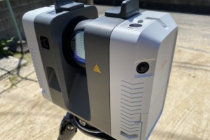 弊社ではライカ・ジオシステム社製 RTC360(以降、RTC360)を導入しており、地上レーザースキャナー測量の体制を整えています。TLSの特徴は高精度、高密度での観測が可能であることに加え現場での作業時間の短縮が期待できる点です。RTC360はTLSの中でも軽量・小型でありつつ高精度での観測が可能な機器となっています。また、RTC360の特徴的な点として全方位を確認可能なカメラ画像から機器の移動量を推定して観測した点群データどうしを自動で結合する機能が備わっています。